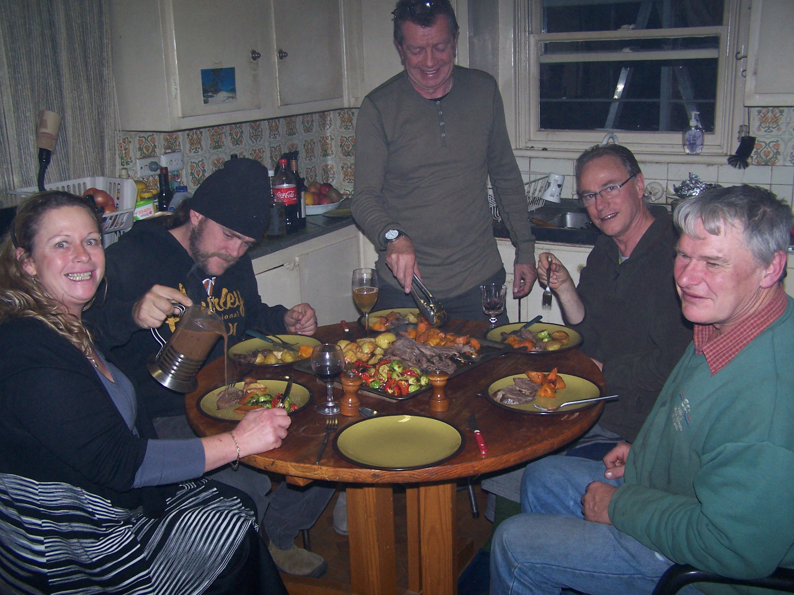 Don’t be fooled by the jollity of the occasion. We are having fun of course, rugged up (as we say here) with several layers and the wood stove on which we rely for cooking and hot water. Head beyond this room to the bedroom wing or outside areas and you risk a severe chilling, in a not-so-fun way!!